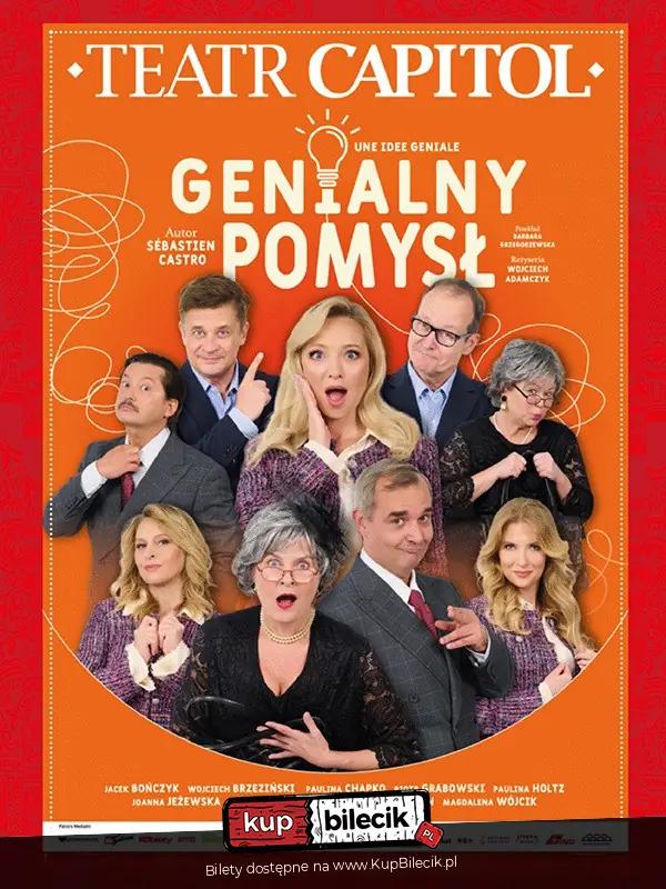"Genialny pomysł" to błyskotliwa komedia pomyłek, w której nikt nie jest tym, za kogo się podaje, nawet sąsiadka, która sama liczy na romans. Nieustające wejścia, wyjścia, zamiany ról, przebrań i osobowości, a wszystko w paryskim domu pełnym tajemnic, przecieków i… niepokojąco znajomych twarzy. Jeden aktor - trzy role. Jedno mieszkanie - niezliczona liczba gaf. I wieczór, który miał być spokojny… ale totalnie wymknął się spod kontroli. W tym spektaklu każdy ma coś za uszami. Czy to wszystko to naprawdę tylko genialny pomysł…czy raczej genialny bałagan? Przekonaj się na własne oczy! Wielokrotnie nagradzana sztuka Sébastiena Castro, to prawdziwa perła nowoczesnego francuskiego teatru komediowego. Jeśli lubisz teatr, który rozbraja absurdem, zachwyca precyzją i sprawia, że publiczność chichocze do ostatniej minuty, to jest to spektakl dla Ciebie.