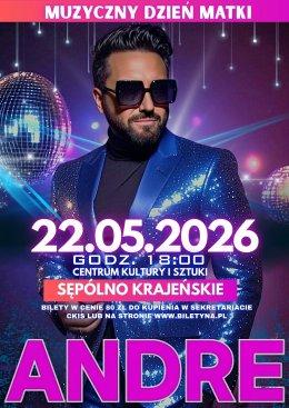 Już 22 maja 2026 r. o godz. 18:00 w Centrum Kultury i Sztuki w Sępólnie Krajeńskim wystąpi Andre – jeden z najbardziej rozpoznawalnych artystów sceny disco polo!
